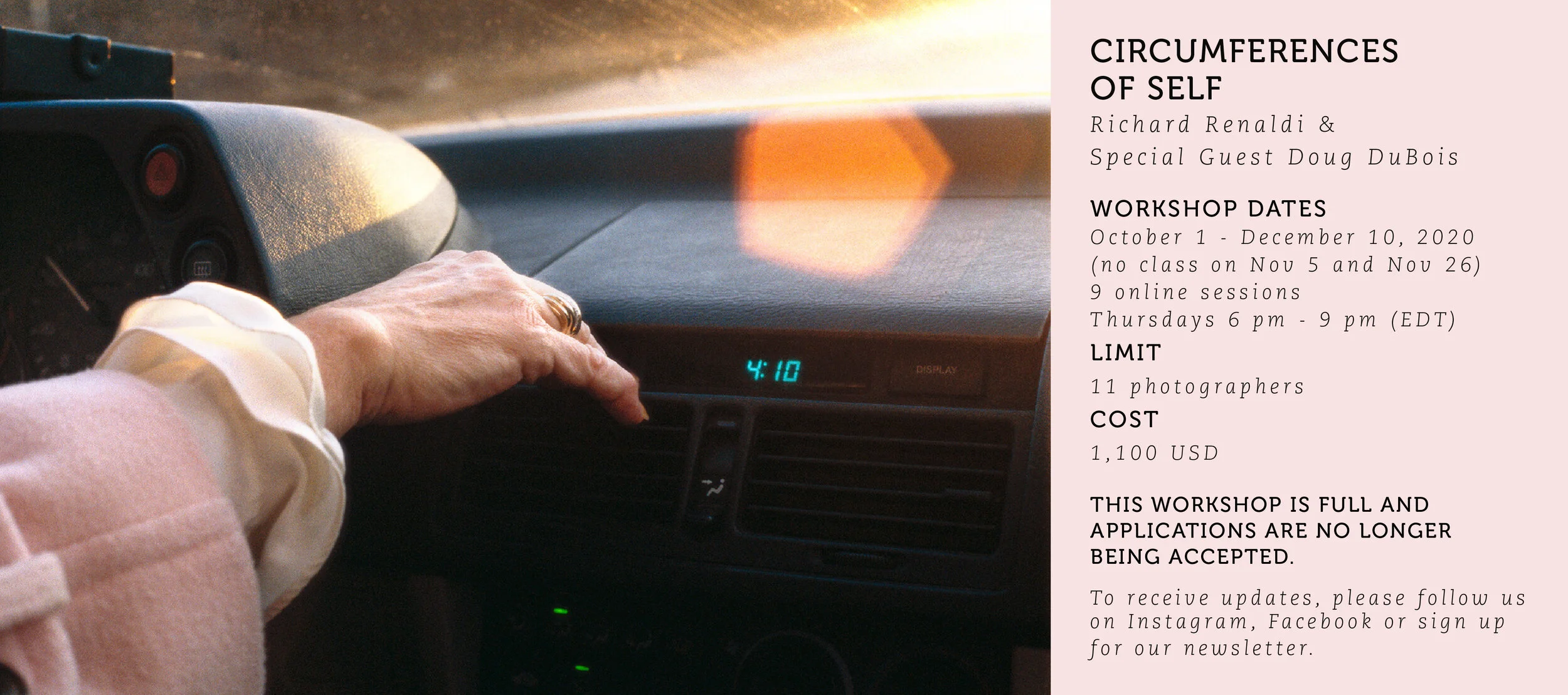 In this class, we will study photography in the context of our new forms of interaction, using images as a creative force to express our concerns and interests, and as a tool to understand the fluctuating radius of our social circumstances and the new normal.